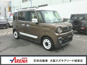 12月1日【R3年12月登録車】スペーシアギア マイスタイル 全方位モニター付メモリーナビゲーション・スズキコネクト対応通信機装着車 ウッディブラウンホワイト2トーンルーフ 車両価格 171.8万円(税込) 基本プラン支払総額 185万円(税込) 【大阪スズキアリーナ城東】